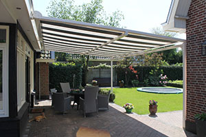 De Piazzola is een type zonwering met de luxe uitstraling van een overkapping en knikarm gecombineerd. Een bijzondere zonwering die u optimaal laat genieten van het buitenleven en uw terras.
